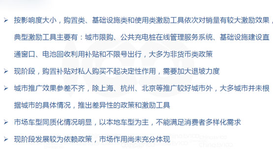 研究发现,目前我国新能源乘用车推广主要依赖政策和激励工具,各城市激励工具总量和种类对新能源乘用车销量有显著影响;激励工具中城市限购对新能源乘用车销量影响最大,相比而言,现阶段购置补贴对新能源乘用车销量影响没有期望中那么大。