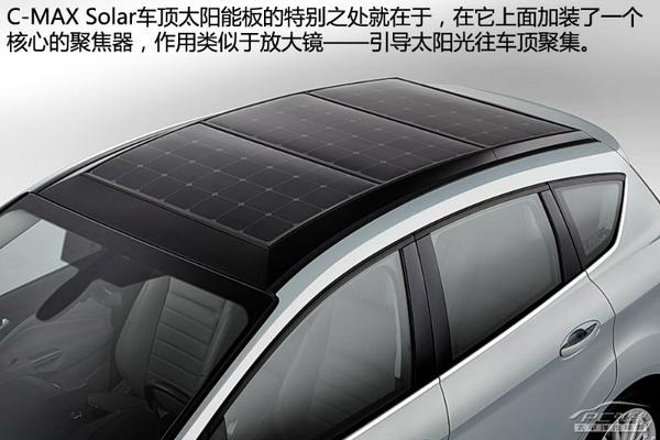 福特正在改变这一切。最近在消费电子协会于拉斯维加斯举办的国际消费电子展(CES)上,福特公开了它的一款充电式混合动力C-MAX车型。这款车用车顶的太阳能电池板给锂离子电池充电。这块电池可以供车行驶34公里,之后混合汽油发电机开始工作。“这是世界上第一款不需要插上插头充电的充电式汽车”,福特电气化和基础设施的全球总监麦克.汀斯基说道。