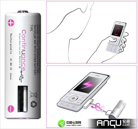现在的移动电源五花八门,什么样的都有,而曾经被用在电子产品上的5号电池则成为了昨日黄花,似乎早已被锂电池所淘汰。然而屌丝也有逆袭成功之时,五号电池如今也大翻身,摇身一变成了移动电源。现在就有这样一种概念电池被设计出来,它的外观跟五号电池没有区别,但是底部多了一个USB接口,通过这个接口你就可以让五号电池为移动设备提供电流了,不过它真的能当五号电池来用吗?成本要多少钱呢?
