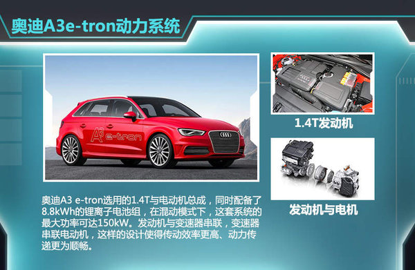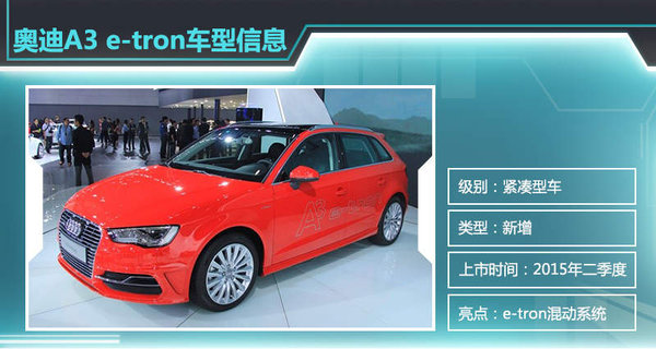奥迪品牌在今年伊始便公布了自己的新能源车规划,未来每一年将推出一款插电混合动力车,并且多款纯电动车也将陆续推出。中国作为奥迪全球最大的市场,新能源领域需求量正在逐步提升,奥迪也将全面进入该细分领域。近日,网通社从一汽-大众内部人士获悉:此前于2014年11月广州车展亮相的奥迪A3 e-tron车型,将在今年第二季度正式引入,新车采用e-tron插电混动系统,百公里油耗仅为1.5L,全面提升车辆的燃油经济性。