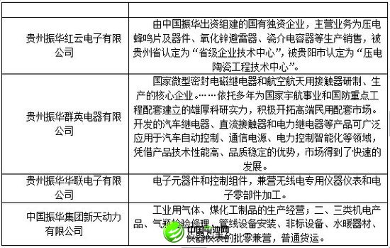 贵州振华群英电器有限公司 国家微型密封电磁继电器和航空航天用接触器研制、生产的核心企业。……依托多年为国家宇航事业和国防重点工程配套建立的雄厚科研实力,积极开拓高端民用配套市常开发的汽车继电器、直流接触器和电力继电器等产品可广泛应用于汽车自动控制、通信电源、电力控制智能化等领域,凭借产品技术性能高、品质稳定的优势,市场得到了快速的发展。
