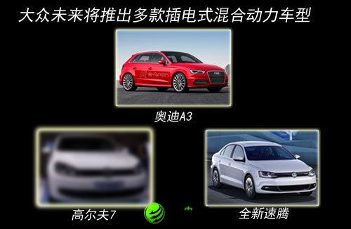 高尔夫7插电式混动的车型信息近日被曝光,预计最快将于2014年正式上市销售,未来大众还将推出诸如全新速腾等插电式混合动力车型。
