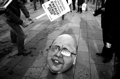 2012年11月2日,德国总理府举行能源会议,示威者则在场外抗议。