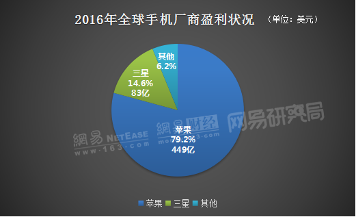 图2 2016年全球手机厂商盈利状况 (数据来源:SA 制图:网易研究局)