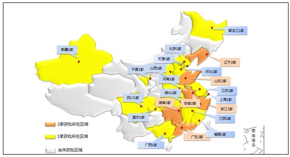 截止2012年8月,我国总计批复了22省区市的28个“城市矿产”示范基地,其区域分布见下图。其中,辽宁、山东、浙江、安徽、湖南及广东六省已有两个示范基地获批,北京、天津、重庆、上海、河北、黑龙江、新疆、四川、河南、湖北、山西、宁夏、广西、福建、江西、江苏等省市则有一个示范基地获批。