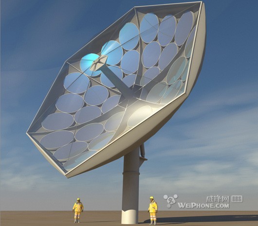 每个光伏芯片在白天可提供 200 到 250 瓦的电能,一个完整的阵列包含有数百个光伏芯片,就能提供稳定的 25 千瓦电能。这种新型的发电设备每平方米造价约为 250 美元,只有传统太阳能电池的三分之一,而电力成本仅为每千瓦时(每度)0.1 美元,与火力发电成本不相上下,相信这种太阳能发电技术很快便可实用化。