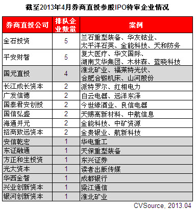 表2 截至2013年4月券商直投参股IPO待审企业情况