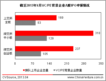 图1 截至2013年4月VC/PE背景企业A股IPO申报情况