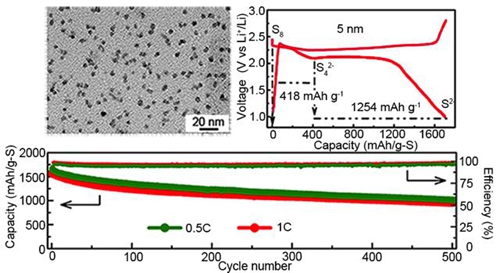 图2. 粒径为5nm的硫颗粒的电化学性能(Nano Lett. 2015, 15, 798)