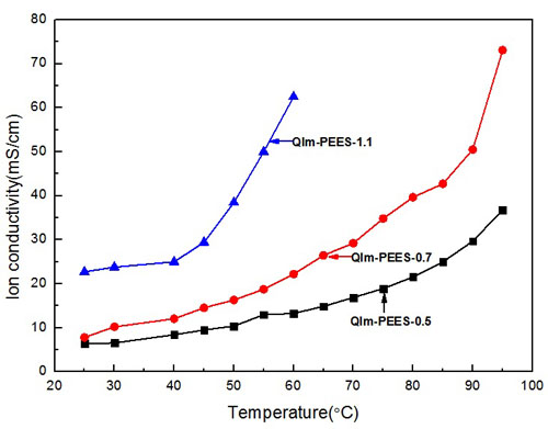 QIm-PEES-AEMs在不同温度下的离子电导率