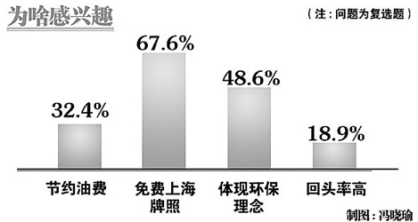在接受访问的37位观众中,有34位表示听说或体验过新能源车,占到了绝大多数。而其中考虑购买新能源汽车的观众达到20位。这20位观众选择购买的因素主要集中在免费的上海牌照、环保绿色理念、节约油钱。显然,高企的牌照和油价,凸显了新能源汽车的经济性。当然,新能源汽车时尚的外形带来的回头率,也是不少观众尤其是女性观众选择的原因之一。