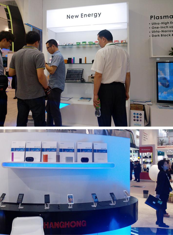 长虹移动电源首次亮相广交会,以外形时尚、颜色亮丽、功能齐全吸引了众多的参观者,长虹新能源公司此次参展展品除了移动电源,还有太阳能系列产品和电池产品,小型家庭户用太阳能产品集发电、储能、应用为一体,以其结构简单、操作方便、性能稳定等特性吸引了大量的参观者。