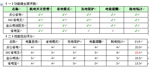 (6) 综合测试后真实的性能差异,对最后的算术得分作出修正,360省电王电量统计和预测精益求精,不扣分;点心省电的电量统计功能有bug扣去1分。