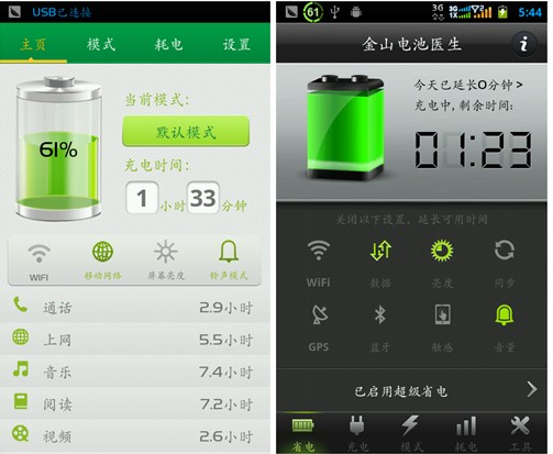 (2) 省电是根本,省电王,点心省电都基本遵循看这一核心,金山医生作为一个从ios平台起家延展到安卓平台的电池应用,延续了以往过于注重保养的特点,实测省电性能一般。