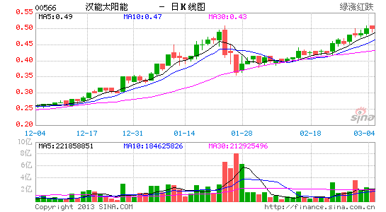 汉能太阳能昨大升20%,收报0.6元,创52周新高,成交量大增至4.51亿股。其中逾一半成交量(约2.8亿股)集中在下午2时42分后出现,该段时间股价亦突然由0.53元升上0.6元。适逢母公司昨亦大手增持汉能太阳能1.023亿股,成交量占总成交22.7%。市场一直关注母公司会否注入中游太阳电池板或其他业务,财务董事许家骅称,由于母公司今年2月已收购汉能太阳能50.65%股权,故受证监条例所限,两年内不得注资超过50亿元,否则变成借壳上市,而中游电池板业务约值200亿至300亿元,故两年内注入此项资产的可能性不大。