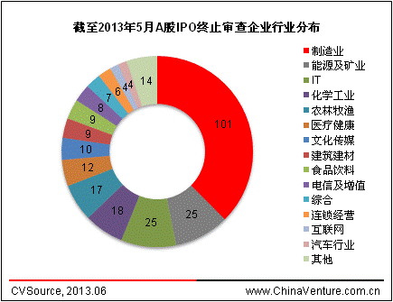 图1 截至2013年5月A股IPO终止审查企业行业分布