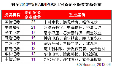 表1 截至2013年5月A股IPO终止审查企业保荐券商分布