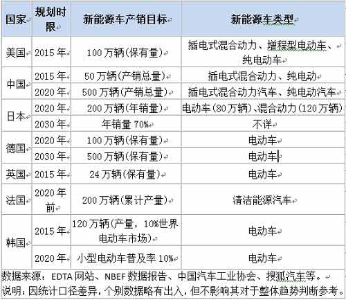 新能源汽车产业主要国家规划目标