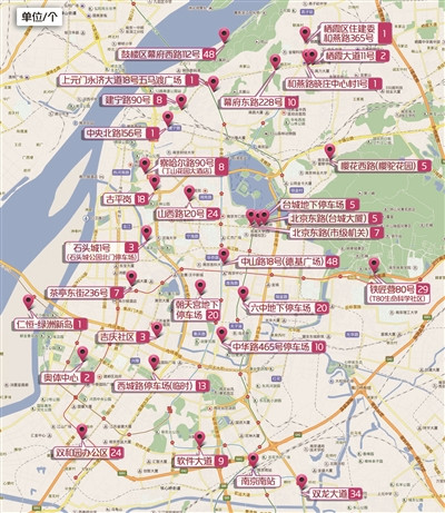 南京主城部分已建成充电桩位置及数量