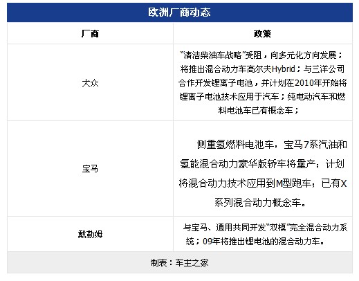 欧洲柴油车份额逐年提高,如西欧柴油乘用车07年的市场份额已达53.3%。欧洲车企在柴油车技术上处于领先水平。目前混合动力为重点发展方向。
