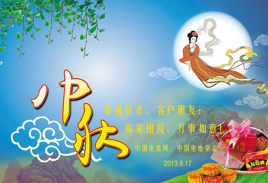 在此,中国电池网、中国电池杂志全体同仁恭祝您阖家团圆,万事如意!中秋节快乐!