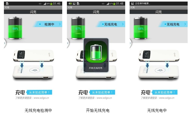 一块看似普通的电池加“闪充“客户端,就可让三星S4从此告别数据线的烦恼。放上即充,拿开又可电话、游戏,工作娱乐两不误,简直羡煞旁人。无线充电再也不仅仅是nokia的专利,让我们解放S4,让他更加完美!当然这一切无线充电功能的实现,“闪充”功不可没。松果数码强悍软件”闪充”的部分功能,让我们先一睹为快。