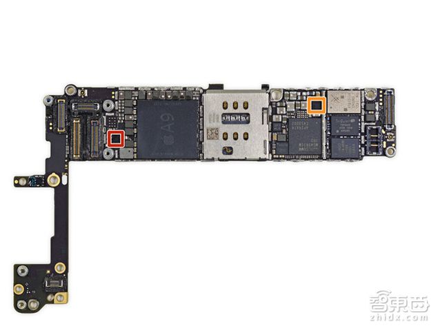 最后要展示的便是苹果iPhone 6s的核心主板区域,几乎所有重要的芯片均位于其中。