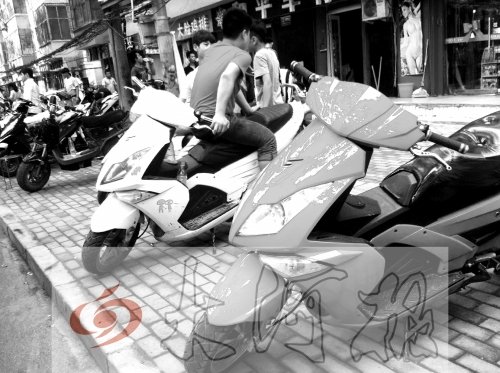 7月2日,郑州市建设西路一所中学门口的车辆停放处,十余辆外形华丽的电动车格外引人注目。宽大的车轮与车身极不协调,车上大多装有闪灯和音响,色彩艳丽的车壳上贴着大大小小的卡通图案。看车师傅说,这些车都是学生的,去年还只有两三辆,如今已经有20多辆了。