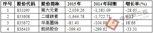 4家新三板石墨烯企业2014-2015年连续亏损