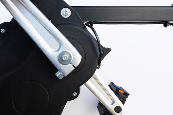 除了续航时间以外,速度同样也很受用户的关心。它的最快速度是每小时 20 公里,倒也不快不慢。应该还有用户会担心,要是骑着骑着没电了怎么办?之前有看到骑小轮自行车的朋友,双腿蹬的飞快,却也抵不上人家大轮子来得洒脱。而 A-Bike 在这点上进行了优化,它的双链驱动让骑行者可以像骑普通自行车那样骑行,同时,前轮上的无刷马达还能为 A-Bike 提供电动助力。