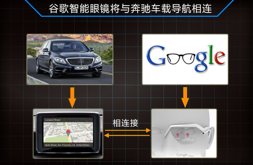 目前奔驰公司的研发部门的研发人员正尝试将谷歌智能眼镜技术植入汽车的导航系统中,以此使消费者在驾驭汽车与步行的不同阶段实现结合,驾驶者将不必再次输入目的地,大大的提升了出行的娱乐性。