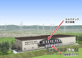 住友与北海道电力联合计划于2014年末完成氧化原液流的安装,并在未来三年里对此进行测试。这一大规模的电池系统将占据新建筑物(面积约为5000平方米)的两层,其中电解液槽位于第一层,电池堆与热交换器位于第二层。