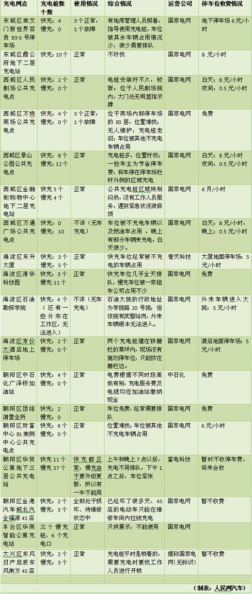 北京重点地区公共充电桩使用情况一览