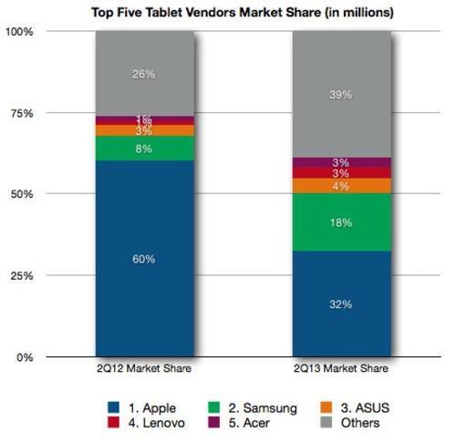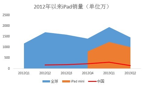 自2010年iPad发布以来,这款设备从被怀疑到被追捧,成为了苹果创造力和影响力的象征。然而经过了三年多的产品迭代,市场对于这台硕大而昂贵的玩具逐渐产生了厌倦情绪。IDC上周发布的数据显示,iPad在全球范围内出现萎缩,销量和市场份额双双下降。在中国市场,iPad的出货量暴跌至28%。虽然iPad依旧是市场上最好的平板电脑,但是消费者对平板电脑的态度却出现了新的变化。
