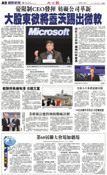 报道指,以往外界只是向微软行政总裁(CEO)鲍尔默施压,要求改善业务表现,推动股价上涨,今次则是首次把矛头指向盖茨。微软拒绝就此事评论。