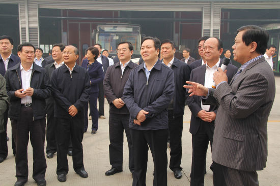 周本顺一行先后参观了钛酸锂电池生产车间、电动车焊装车间实地观摩,当他从银隆集团董事长魏银仓口中得知,该集团推出“零价供车、金融租赁、合同能源管理”运营方式,实现政府、公交、车企、金融四方互利共赢的新型商业模式时,周本顺连连叫好,称赞道:“这个模式值得推广。”