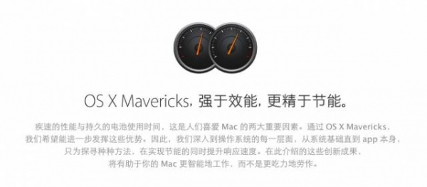 2013年的新款Mac电脑主打功能就是低能耗,这是由于新款Mac搭载了英特尔Haswell处理器。今年6月发布的新款MacBook Air使用了可以使用一整天的电池,即将发布的MacBook Pro也会使用相似的配置。此外,在即将发布的OS X Mavericks系统中,能耗和续航问题也是重点之一。苹果称Mavericks是最强大的OS X,也是最省电的操作系统。