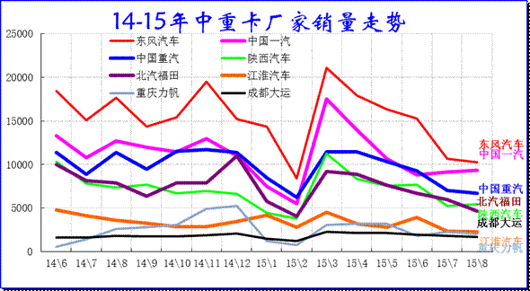 由于15年政府审批效率下降,项目审批而不开工的较多,上半年的中重卡属于休眠期,目前经济也极度不景气,各家3-8月销售的表现均很差。