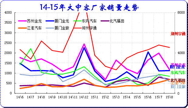 由于新能源补贴和客运需求的促进,15年6月的大客的市场表现较强,8月延续走强态势,宇通和金龙等主力企业走势很好。