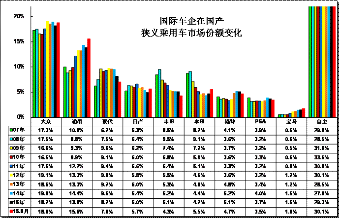 图表 17跨国集团中国狭义乘用车市场历年表现