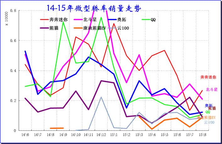 图表 25微型轿车主力品牌2014-15年走势