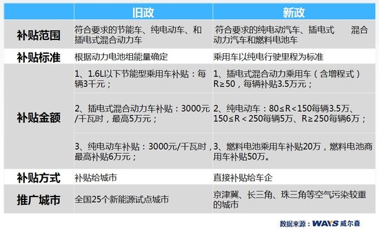 近日,工信部、财政部、科技部、发改委四部委联合发布了新的《关于继续开展新能源汽车推广应用工作的通知》,标志着新一轮新能源汽车推广应用补贴政策正式出台。威尔森研究中心认为,新政策一方面提升消费者购买新能源汽车的积极性新政策摒弃过去的动力电池组能量,改用续航里程作为确定补贴的新标准,更便于消费者在购车时进行对比和购买,也间接引导车企开发出续航更长的产品。另一方面是车企更容易获得补贴。在旧的新能源汽车补贴政策中,因为中央财政补贴的资金是经过当地政府向汽车企业进行拨付的,地方政府往往倾向于照顾本地的企业。新政策的实施则降低了外地新能源汽车生产企业获得补贴资金的难度,竞争更加公平,也间接刺激了车企的推广积极性。