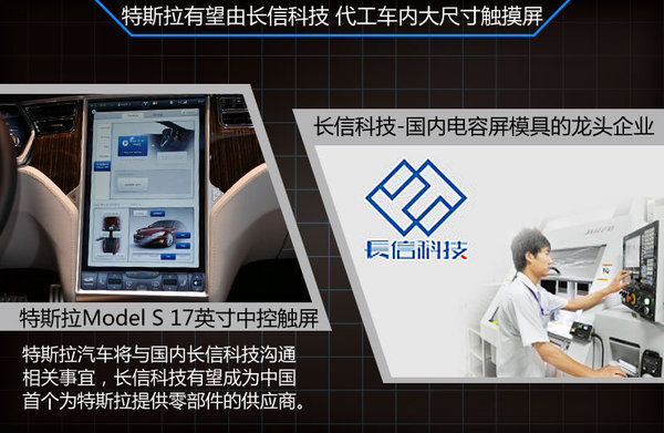 现阶段在国内炙手可热的苹果iPhone手机,均由国内的富士康科技企业进行代工生产,同样出自硅谷的电动车品牌Tesla特斯拉似乎也看到了“中国制造”的成本优势,计划“效仿”苹果。网通社了解到,特斯拉计划与国内一家零部件企业洽谈合作事宜。该企业名为“长信科技”是一家涉及开发和生产大尺寸触摸屏的厂商,时下特斯拉汽车也装配有17英寸高分辨率触摸屏,用以取代传统内饰的中控按键。