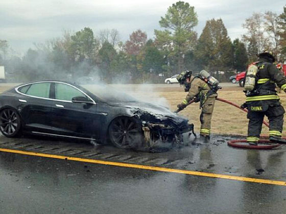 这起着火事件发生于周三下午,事发地点位于田纳西州士麦那市附近,火舌吞没了整个车头。田纳西州高速公路巡警发言人表示,那辆Model S的底盘撞上了一个拖杆,导致起火事件。