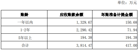 上述3814.47万元应收账款余额中,其中诺莱特对比克动力的应收账款余额合计194.38万元,上述应收账款为诺莱特在2012年至2013年间(诺莱特于2017年被新宙邦收购)与比克国际(天津)有限公司直接交易形成的,该部分应收账款已全部计提坏账;其中新宙邦对比克动力的应收账款余额合计3620.09万元。具体账龄结构与坏账准备计提情况如下: