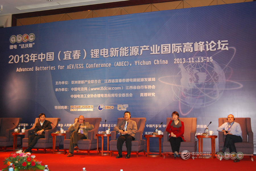 中国电池网-中国电池杂志(杨阳江西宜春报道)11月14日下午,在ABEC锂电高峰论坛上,福斯特总工程师侯峰、巴黎六大AlainMauger、比利时优美科DongJoonIHM、东莞杉杉黄继宏、CICMichelArmand(图片从