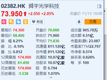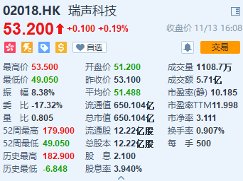 在今天港股开盘后,苹果产业链公司瑞声科技和舜宇光学科技分别大跌7.44%和4.17%,瑞声科技的股价也跌破50港元,创3年来低点。但截至收盘,两家公司止跌反涨,涨幅分别为0.19%和2.85%。