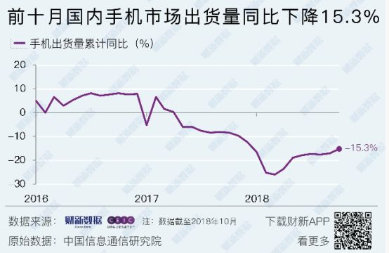 全球手机销售持续下滑,中国前10个月下滑15.3%