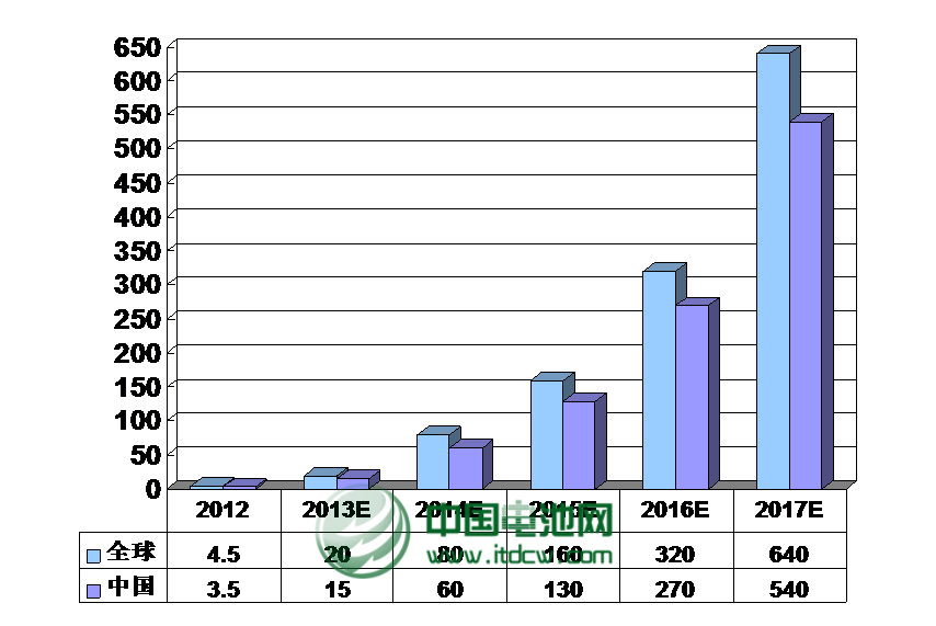 ② 真锂研究预计,2013年将会有15万辆电动三轮车使用锂离子电池,而到2017年将会达到540万辆,年均复合增长率将高达惊人的174.95%;