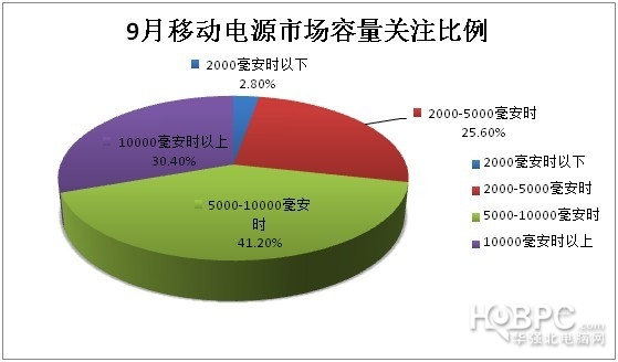 除了市场份额以外,容量与价格也成了消费者关注的方面。根据统计显示,有近四成的网友比较倾向于5000-10000毫安时的移动电源产品,其实就是10000毫安时以上的产品,而2000-5000毫安时产品的关注度为四分之一,2000毫安时以下的产品关注度不到3%,因为2000毫安时以下的电源仅能为iPhone充电一次,所以并不是很受人青睐。